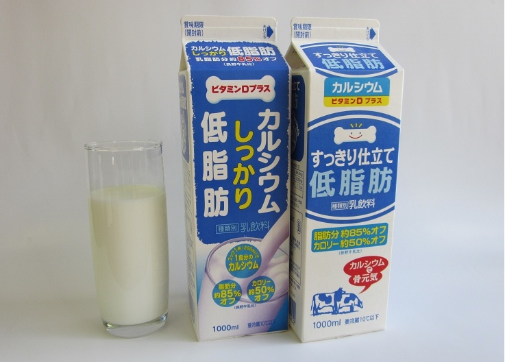 牛乳と同等のカルシウムが含まれており、カルシウム吸収を高めるビタミンDを添加しています。また、牛乳に比べ脂肪分を85%カット、カロリーを50%カットしました。